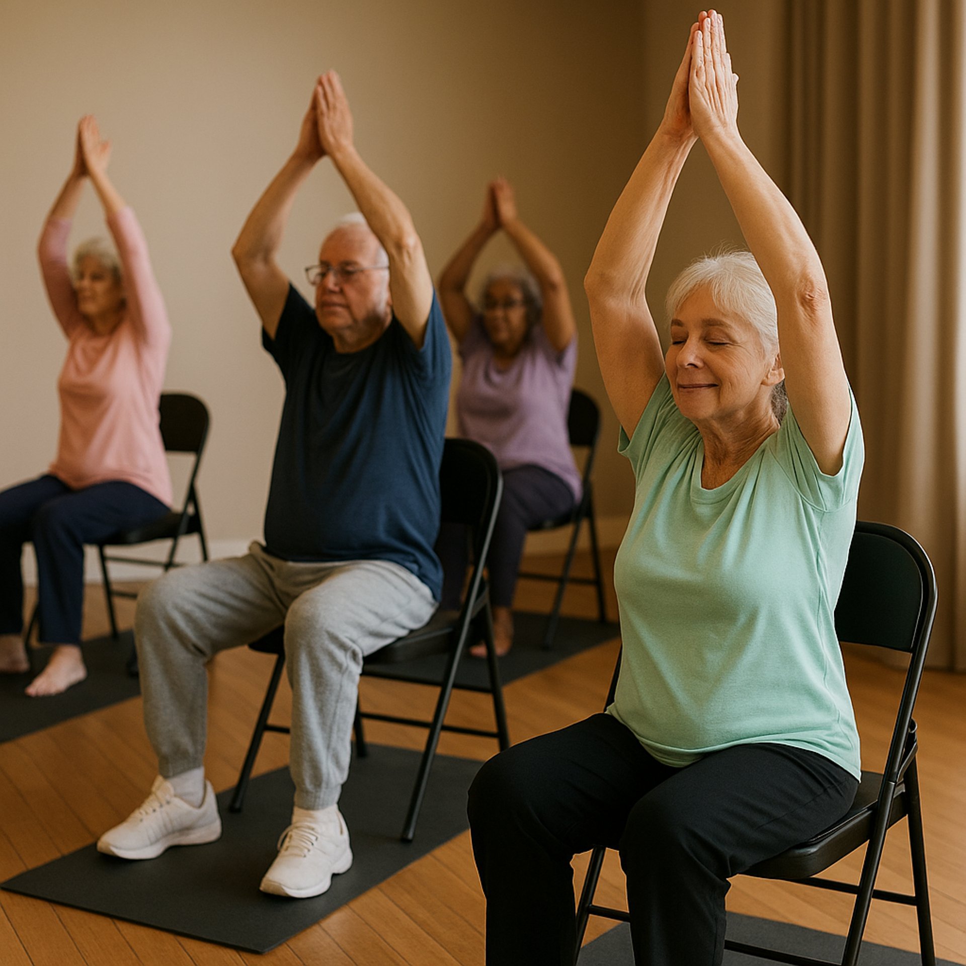 A gentle and accessible form of yoga, practiced both seated and standing with chair support. Suitable for everyone, regardless of fitness level or mobility.